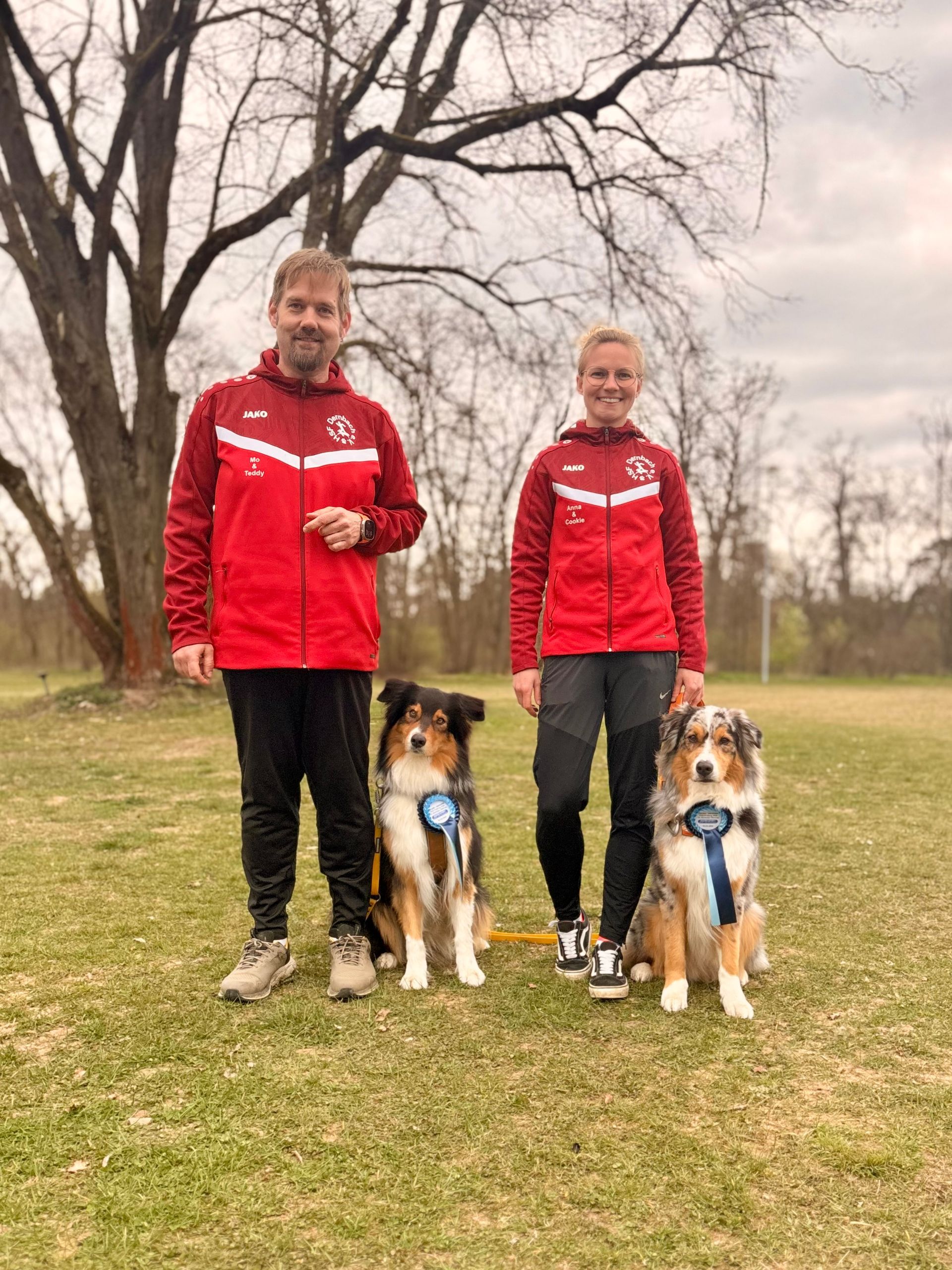 Am vergangenen Sonntag, dem 22. März 2026, nahm unser Verein mit einem kleinen, aber hochmotivierten Team am THS-Turnier der Hundesportfreunde Untere Ahr Sinzig e.V. teil. Trotz der überschaubaren Teilnehmerzahl war die Stimmung innerhalb unserer Gruppe hervorragend – geprägt von Teamgeist, Konzentration und der gemeinsamen Freude am Hundesport. Unsere Starterinnen und Starter traten in den Disziplinen Vierkampf, CSC (Combinations-Speed-Cup) sowie Shorty an. Dabei zeigten alle Teams engagierte Leistungen. Neben den sportlichen Ergebnissen stand vor allem das Sammeln von Erfahrung im Vordergrund. Das Turnier bot eine ideale Gelegenheit, Abläufe zu festigen, die Zusammenarbeit zwischen Mensch und Hund weiter zu verbessern und gezielt an Feinheiten zu arbeiten. Mit Blick auf die bevorstehenden Landesmeisterschaften war die Veranstaltung für uns besonders wertvoll. Sie diente nicht nur als wichtiger Formtest, sondern auch dazu, Sicherheit im Parcours zu gewinnen und Routinen weiter zu entwickeln. Unsere Teams konnten viele positive Eindrücke mitnehmen und wissen nun, an welchen Stellen noch Potenzial zur Optimierung besteht. Ein besonderer Dank gilt Richter Thomas Polster, der mit seiner ruhigen und fairen Art für eine transparente und nachvollziehbare Bewertung sorgte. Ebenso möchten wir dem gesamten Organisationsteam der Hundesportfreunde Untere Ahr Sinzig e.V. unsere Anerkennung aussprechen. Das Turnier war eine gelungene Veranstaltung, bei der sich Teilnehmer und Zuschauer gleichermaßen wohlfühlen konnten. Die Ergebnisse im Einzelnen: (1) Vierkampf 2 Anna (mit Cookie): 1. Platz, 45 (UO), 262,44 Pkt. Mo (mit Teddy), 1. Platz, 46 (UO), 244,62 Pkt (2) Vierkampf 3 Madeleine (mit Faye): 4. Platz, 50,5 (UO), 265,61 Pkt. Ingrid (mit Asca): 5. Platz, 49,5 (UO), 263,62 Pkt. (3) CSC-Teams "Jugendteam rot grün": Lotta N. (mit Leo), Franziska (mit Ivar), Ian (mit Loki): 1. Platz, 77,85 "Aussies on Tour": Ingrid (mit Asca), Anna (mit Cookie), Bianca (mit Farris): 2. Platz, 77,56 "Die Fellblitze": Mo (mit Teddy), Diana (mit Joda), Nadine (mit Buck): 5. Platz, 92,36 (4) Shorty-Teams "Buck und die Macht": Diana (mit Joda), Nadine (mit Buck): 2. Platz, 38,27 "Aussie-Gang": Anna (mit Cookie), Mo (mit Teddy): 3. Platz, 84,22